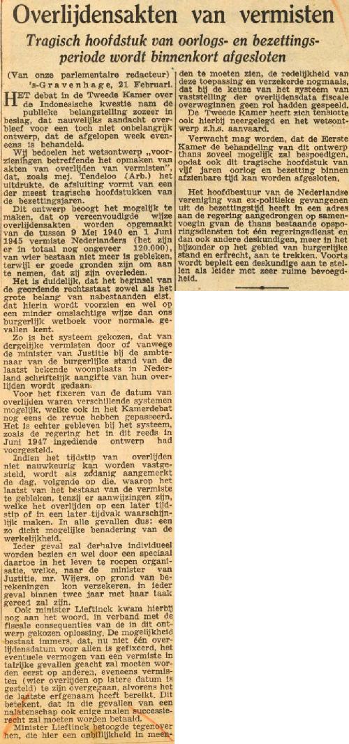 Wetsontwerp over het opmaken van overlijdensakten van vermisten
