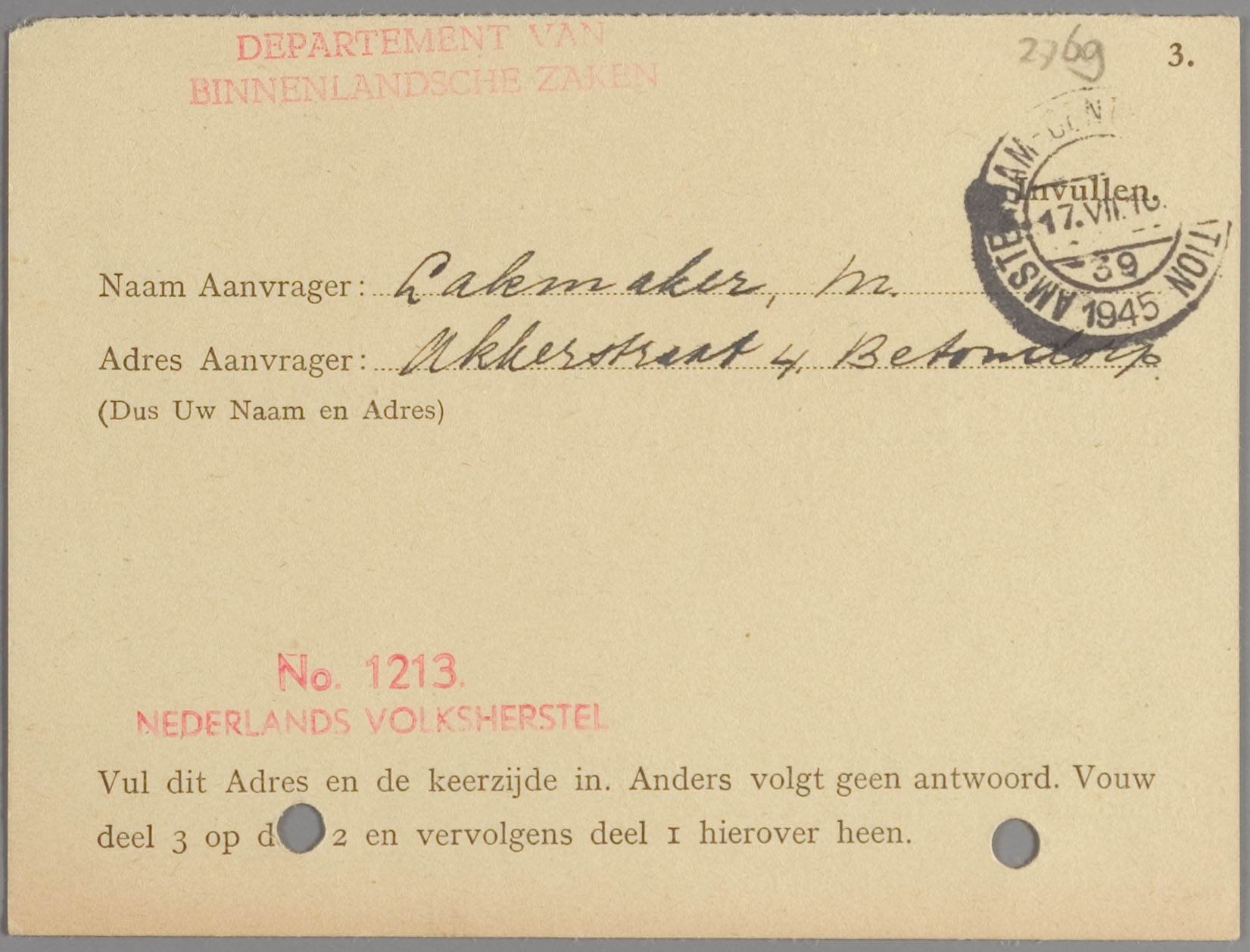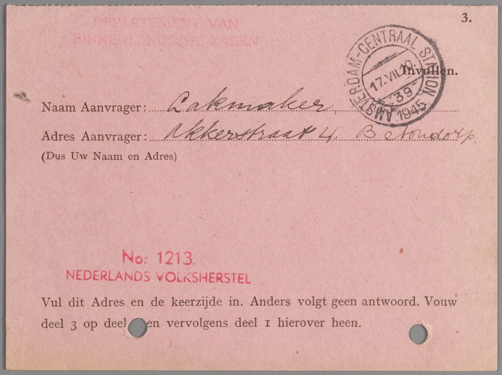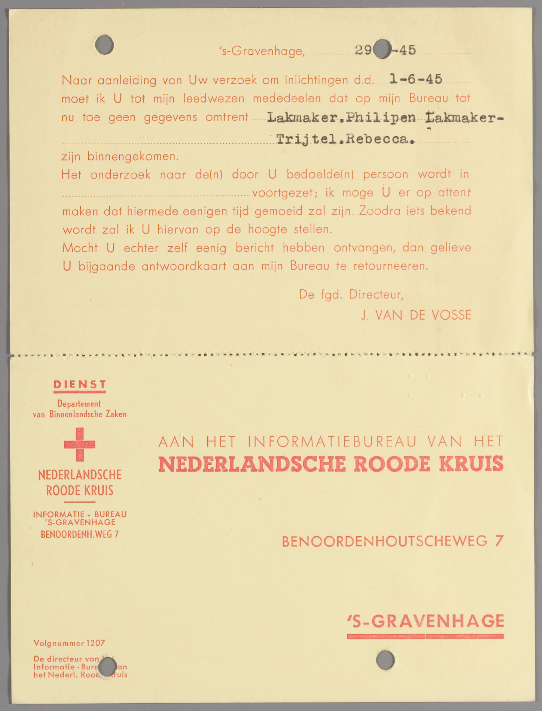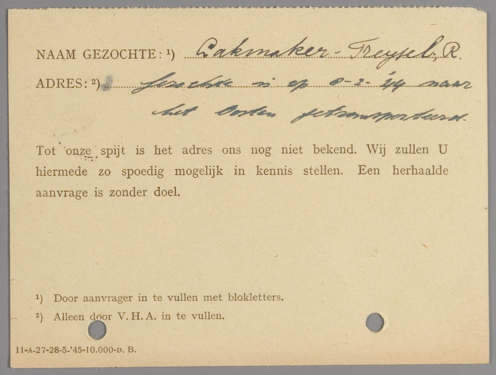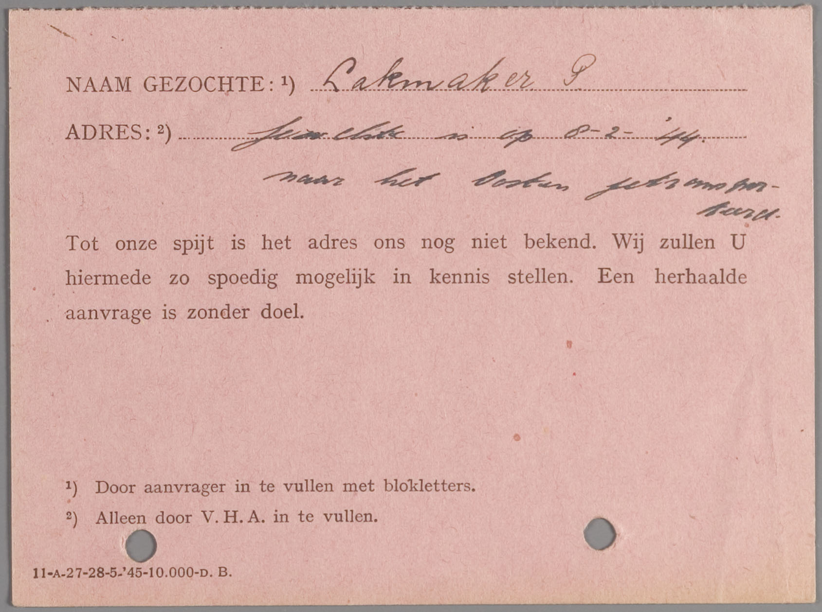 Documenten m.b.t. het opsporen van de ouders van Miep Lakmaker